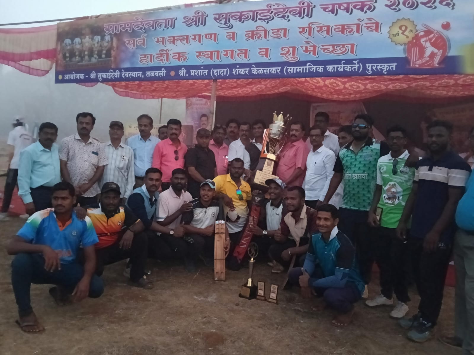 तालुक्यातील तळवली येथे प्रथमच ग्रामदेवता श्री सुकाई देवी चषक 2026 चा दिल दोस्ती दुनियादारी संघ विजेता ठरला तर खेम वरदान पालपेणे संघाला उपविजेतेपदावर समाधान मानावे लागले.