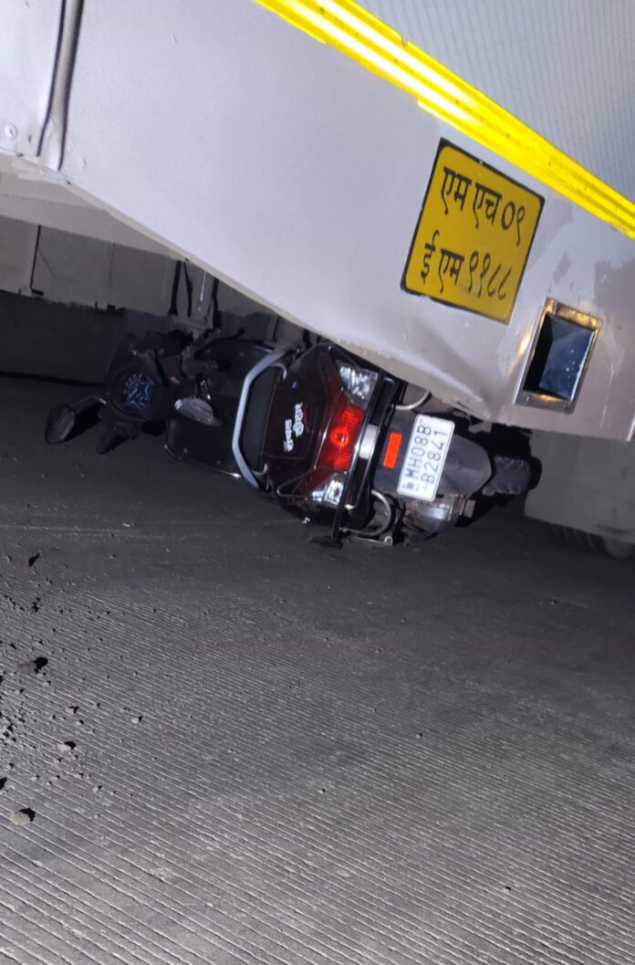 हा अपघात मंगळवारी रात्री १० ते १०.३० वाजण्याच्या सुमारास झाला. रत्नागिरीच्या दिशेने जाणारी शिवशाही बस (MH 09 EM 9188) कुवारबाव येथे स्टॉपवर थांबली होती. प्रवासी बसमधून उतरत असतानाच हातखांब्याहून रत्नागिरीच्या दिशेने जाणारी दुचाकी (MH 08 BB 2841) वेगाने येत होती. त्यावरील चालकाचा वाहनावरील ताबा सुटला आणि दुचाकी चालकासह थेट बसखाली गेली आणि अपघात झाला. यात चालकासह सहप्रवासी सुद्धा जखमी झाला