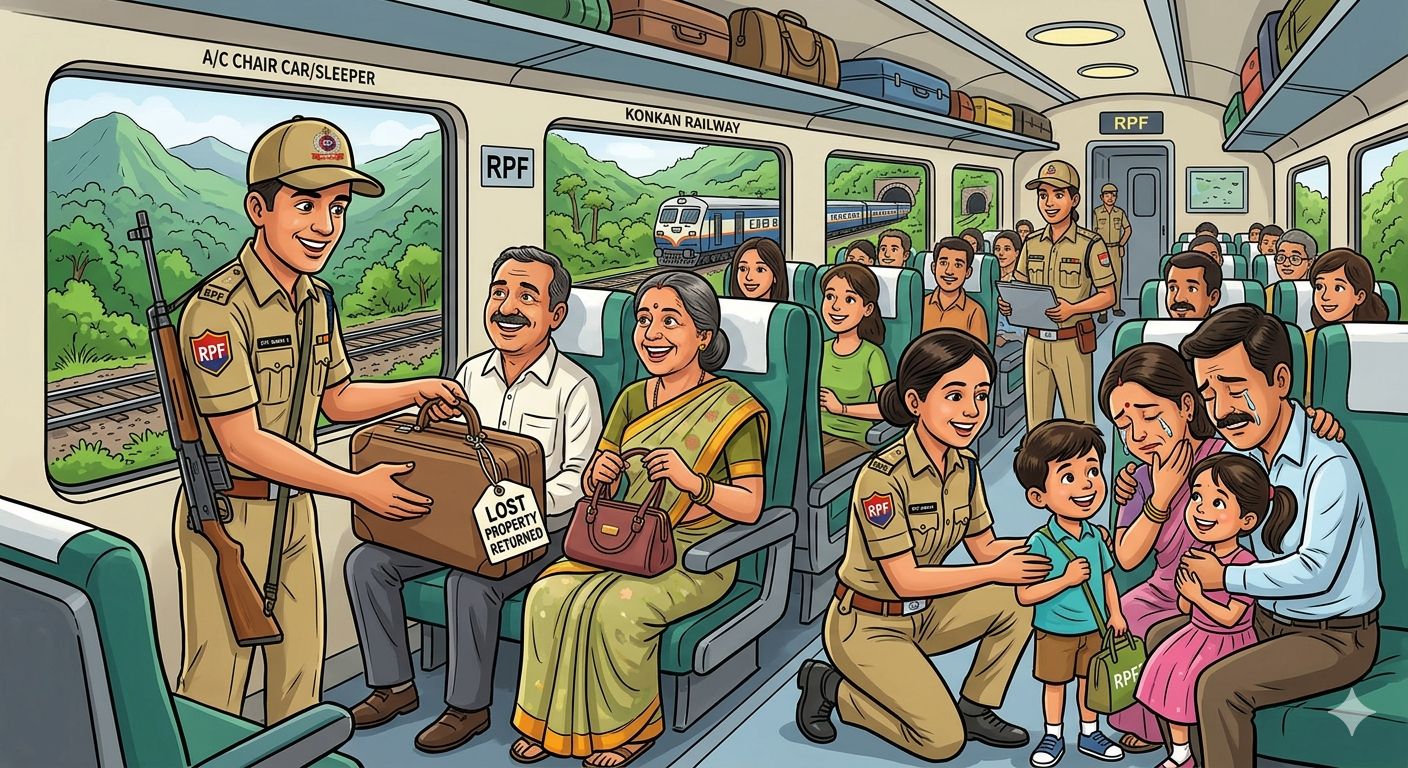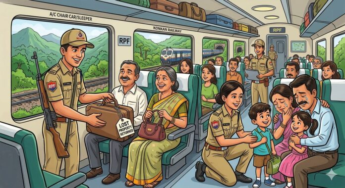 रत्नागिरी:– कोकण रेल्वेच्या मार्गावर कार्यरत असलेल्या रेल्वे सुरक्षा बलाच्या जवानांनी गेल्या वर्षभरात चमकदार कामगिरी करताना प्रवासा दरम्यान ट्रेन मध्ये विसरलेले तब्बल 53लाख 6हजार रुपयांचे सामान प्रवाश्यांना परत केले आहे आणि तब्बल तीस हरवलेल्या मुलांना त्यांच्या आई वडिलांकडे सुखरूप पोहोचवण्याची कौतुकास्पद कामगिरी पार पाडली आहे.