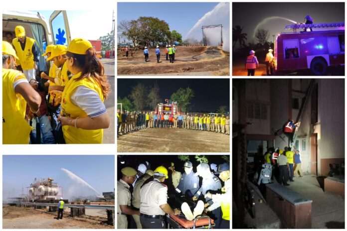 रत्नागिरी:- महाराष्ट्र शासनाच्या गृह विभागातंर्गत येणाऱ्या नागरी संरक्षण दलातर्फे आंतरराष्ट्रीय चालू घडामोडी युद्धजन्य परिस्थितीला अनुसरून 9 एप्रिल 2026 रोजी मॉकड्रिल आणि ब्लॅक आऊट एक्सरसाइज फिनोलेक्स इंडस्ट्रीज लिमिटेड रनपार येथे घेण्यात आली. शत्रूच्या ड्रोनद्वारे औद्योगिक स्थळांवर झालेला हल्ला व त्यामुळे देशाची उत्पादन क्षमता व अर्थव्यवस्था यांना होणारे नुकसान अशी पार्श्वभूमी ठेवून नागरी संरक्षण दल स्वयंसेवक, गृह रक्षक दल, एनसीसी कॅडेट्स, तटरक्षक दल, जिल्हा पोलीस, अग्निशमन दल आणि फिनोलेक्स इंडस्ट्रीजचे अग्नि विमोचक व सुरक्षा बल यांनी मिळून संयुक्त सराव केला.