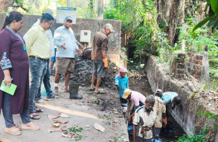 मालवण | प्रतिनिधी : पावसाळा कालावधीत मालवण शहरातील पाण्याचा निचरा सुरळीत व्हावा यासाठी गटारे व व्हाळ्यांची साफसफाई नगरपरिषदेच्या वतीने सुरु करण्यात आली आहे. स्वच्छता व आरोग्य सभापती सौ. पूनम चव्हाण यावर लक्ष ठेवून आहेत. पावसाळ्यात सखल भागात पाणी साचून नागरिक, वाहनचालक यांना त्रास होऊ नये यां दृष्टीने नियोजन व कार्यवाही सुरु आहे.