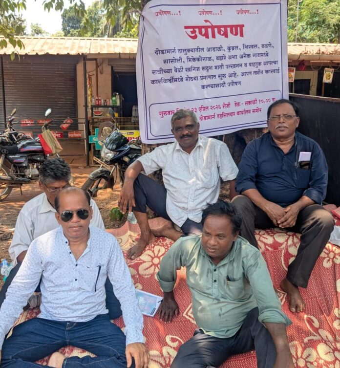 तालुक्यातील आडाळी, कुंब्रल, शिरवल, कळणे, सासोली यांसह विविध गावांमध्ये रात्रीच्या सुमारास सुरू असलेल्या खनिजसदृश्य माती उपशाविरोधात ग्रामस्थांनी आक्रमक पवित्रा घेतला आहे. वारंवार तक्रारी करूनही प्रशासनाकडून दाद मिळत नसल्याने संतप्त ग्रामस्थांनी दोडामार्ग तहसील कार्यालयासमोर आमरण उपोषण छेडले. अखेर तहसीलदार राहुल गुरव यांनी लेखी आश्वासन दिल्यानंतर दुपारी हे उपोषण मागे घेण्यात आले.