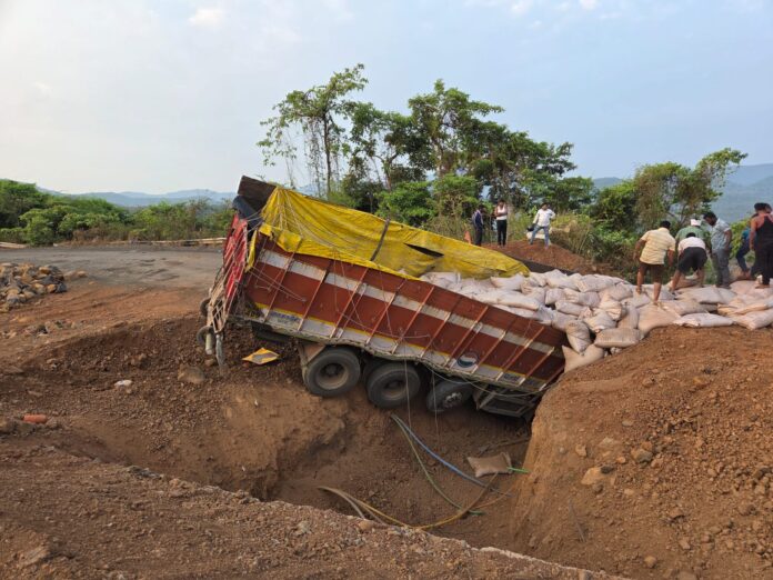पोलिसांनी दिलेल्या माहितीनुसार महंमद रामशेर ताहीर हुसेन अन्सारी (वय ३६ रा.र भोटारावा पोष्ट कर्मा ता. कोंडरमा राज्य झारखंड) हा आपल्या ताब्यातील ट्रक (एम एच १० डी टी ४४०९) फलटण येथून साखरेची पोती भरून जयगड येथे जात असताना आज शुक्रवारी सकाळी पावणे सहा वाजता आंबा घाटातील महामार्गाचे काम सुरु असलेल्या कामाच्या ठिकाणी बंद रोडच्या कडेला असलेल्या दरीत कोसळून अपघात झाला. यात चालक महमंद रामशेर ताहीर हुसेन अन्सारी जागीच ठार झाला.