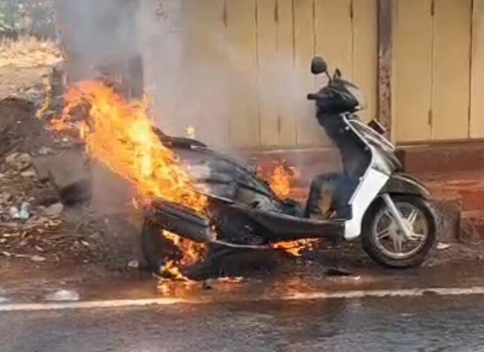 मालवण | प्रतिनिधी : मालवण शहरातील देऊळवाडा येथे चालत्या टीव्हीएस विगो दुचाकीने मागच्या बाजूने अचानक पेट घेतल्याने खळबळ उडाली. दुचाकीने पेट घेतल्याचा प्रकार दुचाकीच्या मागून येणाऱ्या दुचाकीस्वाराच्या लक्षात आला. त्याने वेळीच दुचाकी चालकास सांगून दुचाकी थांबवली. स्थानिक नागरिकांच्या मदतीने आग विझविण्याचा प्रयत्न केला अथक परिश्रमांनतर आग आटोक्यात आली मात्र, दुचाकी जळाल्याने मोठे नुकसान झाले, सुदैवाने दुचाकी चालकास कोणतीही दुखापत झाली नाही.
