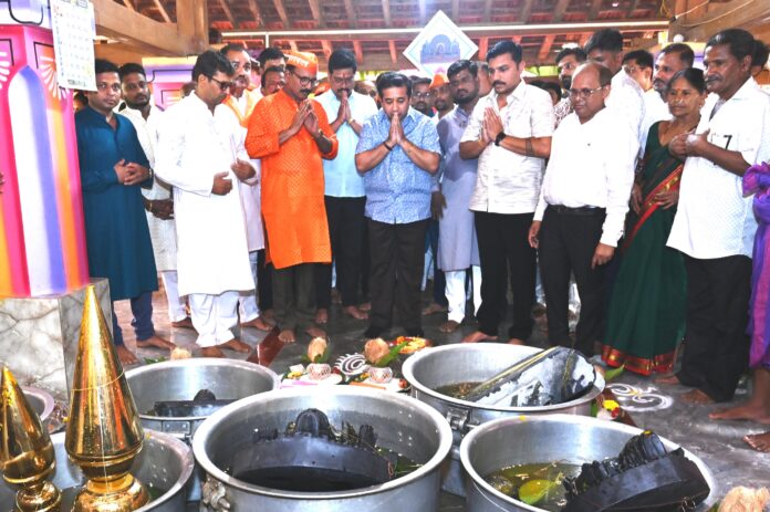 कणकवली : तालुक्यातील सातरल येथील श्री लिंगेश्वर पावणादेवी मंदिराच्या जीर्णोद्धार सोहळ्यास सिंधुदुर्ग जिल्ह्याचे पालकमंत्री ना. नितेश राणे यांनी भेट देऊन पावणादेवीचे दर्शन घेतले. मंदिर परिसरात मोठ्या उत्साहात आणि भक्तिमय वातावरणात हा सोहळा पार पडला. यावेळी पालकमंत्री ना. नितेश राणे यांचा शाल, श्रीफळ व सन्मानचिन्ह देऊन मान्यवरांच्या हस्ते सत्कार करण्यात आला.