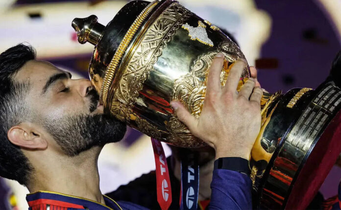नवी दिल्ली : 18 वर्षांच्या दीर्घ प्रतीक्षेनंतर रॉयल चॅलेंजर्स बेंगळुरू (RCB) ने अखेर आयपीएल ट्रॉफीवर नाव कोरले. अहमदाबाद येथील नरेंद्र मोदी स्टेडियमवर झालेल्या अंतिम सामन्यात पंजाब किंग्जचा 6 धावांनी पराभव करत RCB ने पहिल्यांदाच आयपीएल विजेतेपद जिंकले.