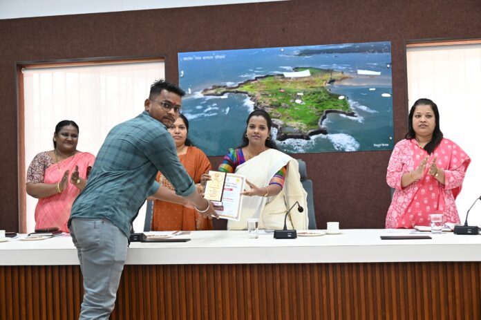 जिल्हाधिकारी कार्यालय, सिंधुदुर्ग येथील ‘आपले सरकार सेवा केंद्र’ हे आदर्श सुविधा केंद्र म्हणून घोषित करण्यात आले असून त्याचे उद्घाटन जिल्हाधिकारी तृप्ती धोडमिसे यांच्या हस्ते संपन्न झाले. या आदर्श केंद्राच्या माध्यमातून नागरिकांना अधिक सुलभ, जलद व पारदर्शक सेवा देण्यात यावेत अशी सदिच्छा व्यक्त करत नागरिकांनी या जिल्हास्तरीय आपले सरकार सुविधा केंद्राचा जास्तीत जास्त लाभ घ्यावा असे आवाहन जिल्हाधिकाऱ्यांनी यावेळी केले.