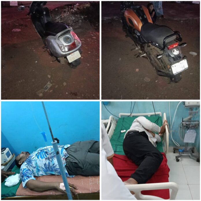 या अपघातात भरणे नाका येथील राजू कोलगे आणि अनिकेत घडशी हे दोघे गंभीर जखमी झाले. अपघातानंतर स्थानिक नागरिकांनी तातडीने मदत करत जखमींना रस्त्याच्या कडेला सुरक्षित ठिकाणी हलवले.