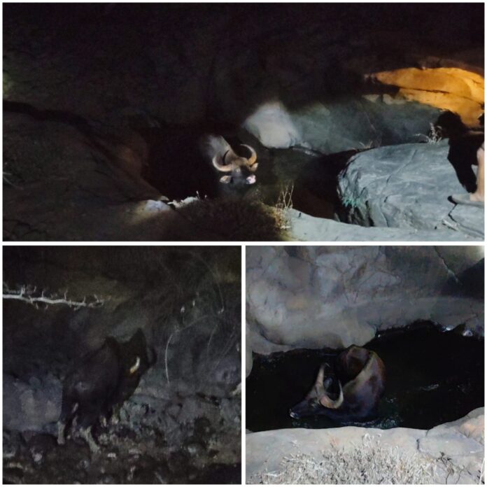 ओवळी येथील नैसर्गिक डोहात अडकलेल्या रानगव्याला काढले सुरक्षितपणे बाहेर!