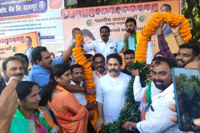 निलेश राणे तुम आगे बढो हम तुम्हारे साथ है चा नारा देत राजापुरात राणे यांचे जोरदार स्वागत करण्यात आले.