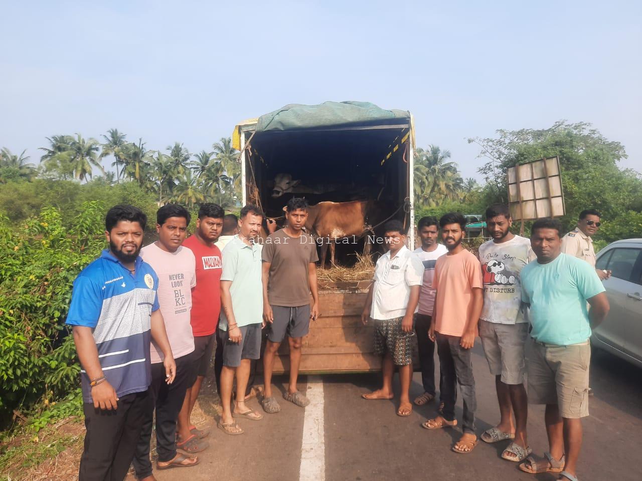 एका टेम्पो मधून बेकायदा गुरांची वाहतूक होत असल्याची माहिती मिळताच मालवण मधील काही तरुणांनी पाठलाग करत देऊळवाडा सागरी महामार्ग येथे सकाळी हा टेम्पो अडवून त्याची तपासणी केली असता पूर्ण बंदिस्त केलेल्या या टेम्पोच्या आतमध्ये तीन गुरे दिसून आली. यामध्ये एक वासरू, एक बैल आणि एक म्हैस मिळून आले. या गाडीच्या चालकाकडे विचारणा केली असता त्याच्याकडून वेगवेगळी उत्तरे मिळाल्याने याठिकाणी पोलिसांना पाचारण करण्यात आले. त्यानंतर हा टेम्पो पोलीस ठाण्यात नेण्यात आला. यावेळी सीझर डिसोजा, ललित चव्हाण, अनिकेत फाटक, सिद्धेश मांजरेकर, उमेश चव्हाण, पंकज गावडे, पार्थ वाडकर, संदेश फाटक, शैलेश नामनाईक आदींचा समावेश होता. याबाबत मालवण पोलीस ठाण्यात पुढील कारवाई सुरु आहे.