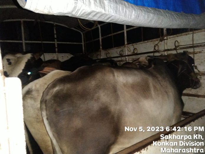 ५/११/२०२३ सायंकाळी साखरपा दूरक्षेत्र येथे पाळीव गुरांची वाहतूक करणारी पीकअप गाडी क्र.MH-10-Z-8867 ही गाडी पकडण्यात आली. यावेळी बजरंग दल लांजा यांनी पोलीस खात्याला मदत केली. ही गाडी पालीवरून कोल्हापूरच्या दिशेने निघाली होती. यामध्ये सहा पाळीव जनावरे वेड्यावाकड्या पद्धतीने भरण्यात आली होती.या गाडीचा अल्ताफ नामक चालक होता.कत्तलीच्या हेतूने ही वाहतूक करण्यात येत होती. या घटनेची माहिती मिळताच देवरुख पोलीस निरीक्षक प्रदीप पवार यांनी साखरपा दूरक्षेत्र येथे उपस्थित झाले.त्यांच्या मार्गदर्शनाखाली गुन्हा नोंद करण्यात आला, श्री शिवप्रतिष्ठान हिंदुस्थान रत्नागिरी, गोसेवा संघ यांचा मार्फत गुराची व्यवस्था करण्यात आली.