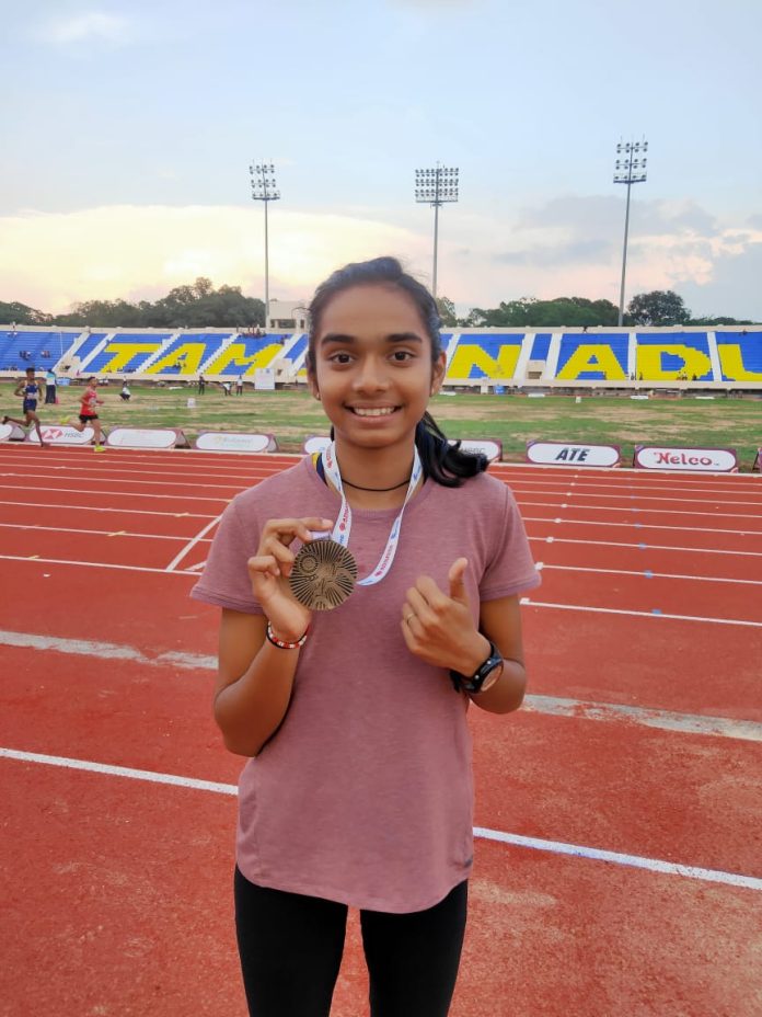 मसुरे | झुंजार पेडणेकर : सिंधूकन्या असलेल्या मूळ गाव तरेळे आणि मसुरे गडघेरावाडी येथे आजोळ असलेल्या स्वानंदी संतोष सावंत हिने तामिळनाडू कोइंबतूर येथील नेहरू स्टेडियम मध्ये झालेल्या व तामिळनाडू ॲथलेटिक असोसिएशन च्या वतीने पार पडलेल्या ३८ व्या ज्युनिअर राष्ट्रीय शालेय ॲथलेटिक्स या स्पर्धेमध्ये मध्ये १६ वर्षाखाली मुली गटातून ८० मीटर हरडल्स स्पर्धा ११.७३ सेकंदात पार करून प्रथम क्रमांक प्राप्त करून सुवर्णपदक पटकाविले. स्वानंदी सावंत ही या स्पर्धेमध्ये महाराष्ट्र संघाचे प्रतिनिधित्व करत होती.