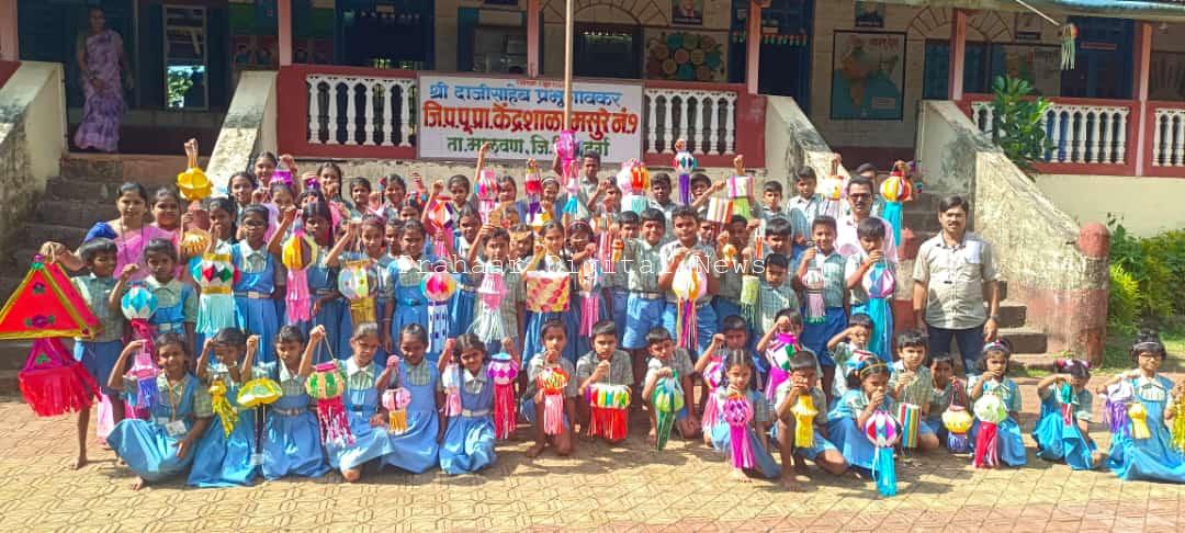 मसुरे | झुंजार पेडणेकर :केंद्र शाळा मसुरेच्या इयत्ता पहिली ते आठवीच्या सर्व विद्यार्थ्यांनी कार्यानुभव विषय अंतर्गत स्वकल्पनेतून विविध प्रकारचे पर्यावरण पूरक आकाश कंदील बनवून दीपावलीचा उत्सव साजरा केला. यावेळी प्रशाला मुख्याध्यापिका शर्वरी सावंत, केंद्रप्रमुख नारायण देशमुख, व्यवस्थापन समिती अध्यक्ष सौ शितल मसुरकर, उपाध्यक्ष संतोष दुखडे, शिक्षण तज्ञ सन्मेष मसुरेकर, माजी सरपंच लक्ष्मी पेडणेकर, माजी अध्यक्ष दत्तप्रसाद पेडणेकर, गोपाळ गावडे, विनोद सातार्डेकर, रामेश्वरी मगर, शिफा शेख, हेमलता दुखंडे, दादा जाम्बवडेकर आदिनी उपक्रमाबद्दल मुलांचे कौतुक केले.