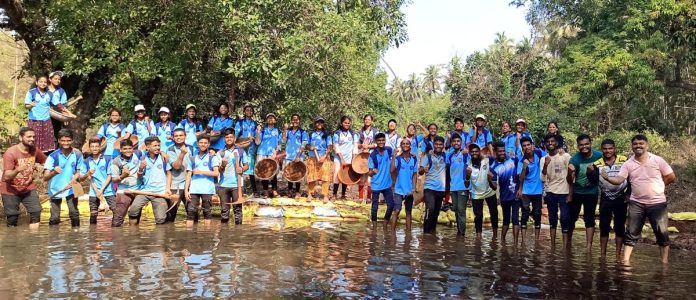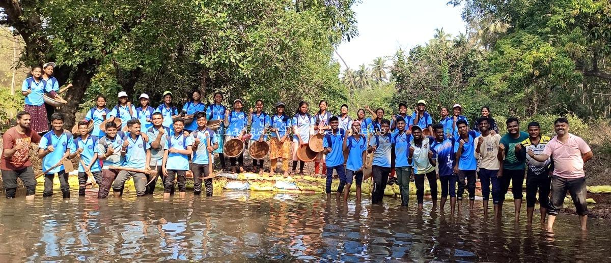 रत्नागिरी : रत्नागिरी एज्युकेशन सोसायटीच्या अभ्यंकर कुलकर्णी कनिष्ठ महाविद्यालयातील राष्ट्रीय सेवा योजना विभागाचे विशेष निवासी श्रमसंस्कार शिबीर दिनांक 16 ते 22 नोव्हेंबर 2023 या कालावधीत कुर्धे गावातील राधा पुरुषोत्तम पटवर्धन माध्यमिक विद्यामंदिर, कुर्धे येथे सुरु आहे. याअंतर्गत ४० फुटी बंधारा बांधण्यात आला. 11 वी व 12 वीतील या छोट्या स्वयंसेवकांनी केलेल्या कामाचे ग्रामस्थांनी कौतुक केले.