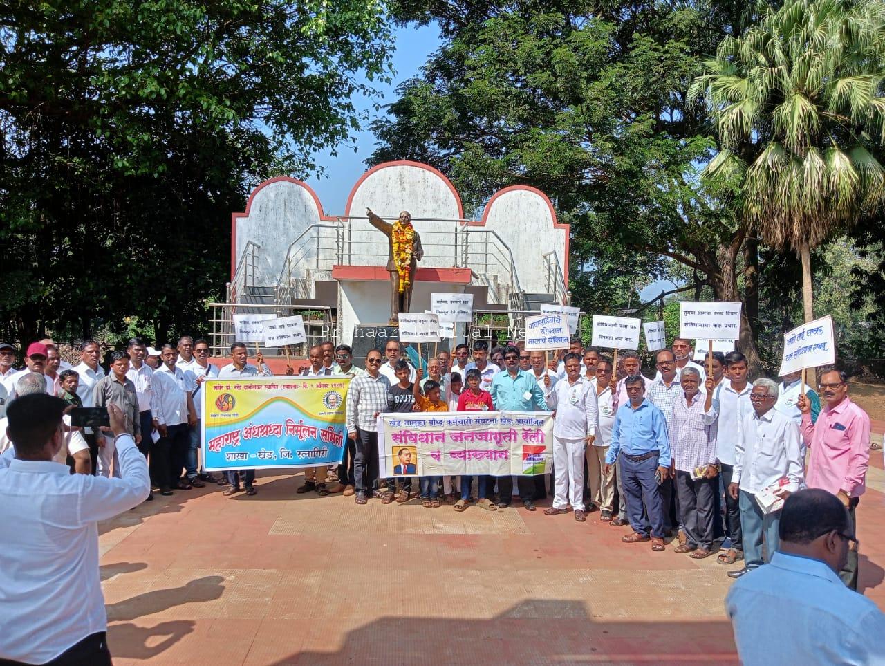 या रॅलीची सुरवात डॉ. बाबासाहेब आंबेडकर भवन येथून होऊन मराठा भवन येथील छत्रपती शिवाजी महाराज यांच्या पुतळ्यास पुष्पहार अर्पण करून, खेड बाजारपेठ, तीन बत्ती नाका, जिजामाता उद्यान येथे डॉ. बाबासाहेब आंबेडकर यांच्या पुतळ्याला पुष्पहार अर्पण करून पोलिस स्टेशन, तहसिल कार्यालय मार्गे एस. टी. स्टॅन्ड करून डॉ. बाबासाहेब आंबेडकर भवन येथे सांगता करण्यात आली.