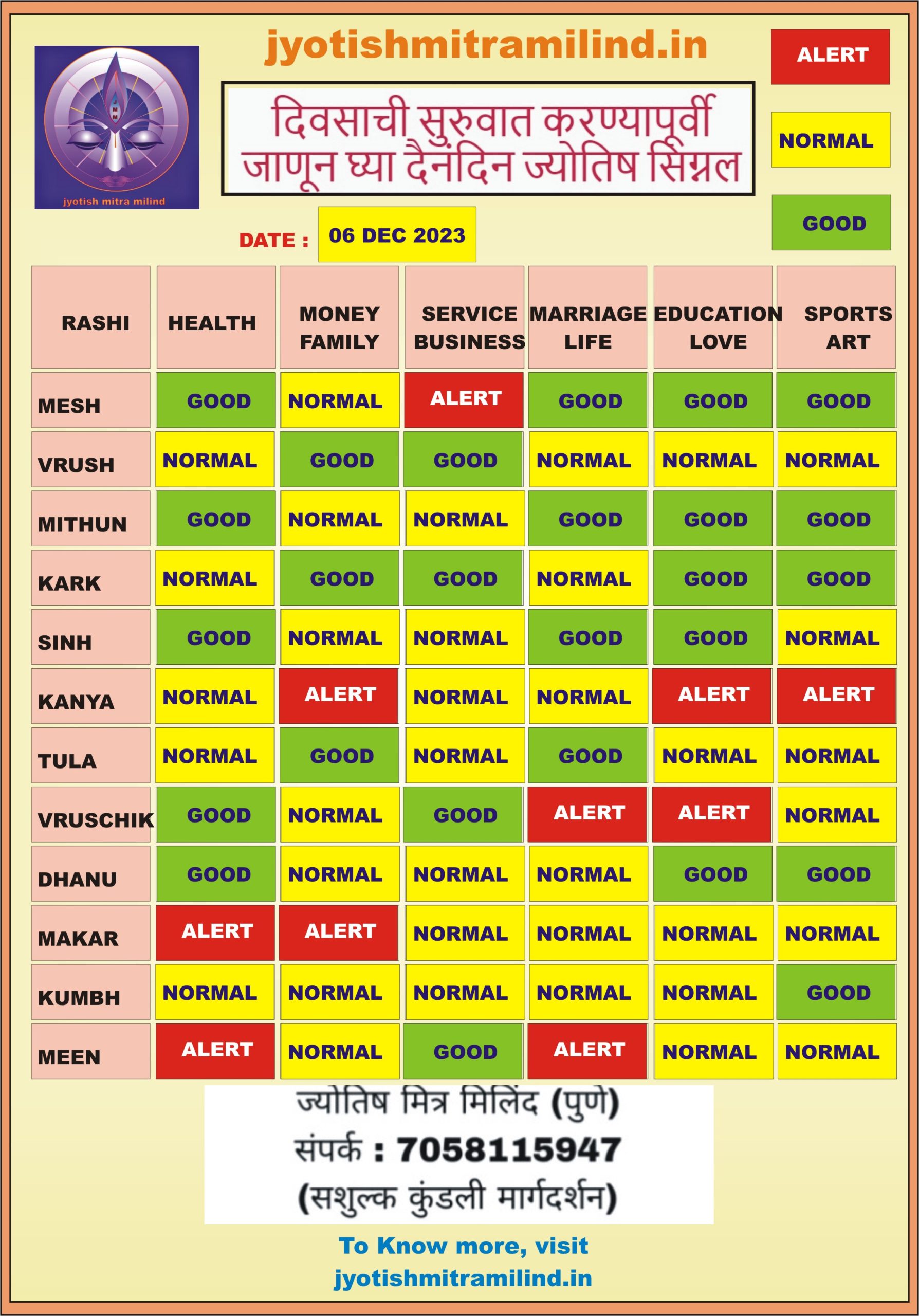 ताज्या घडामोडीराशी भविष्य आजचे राशिभविष्य | दैनंदिन तक्ता December 6, 2023 Share WhatsAppFacebookTwitterTelegram logo आजचे राशिभविष्य | दैनंदिन तक्ता
