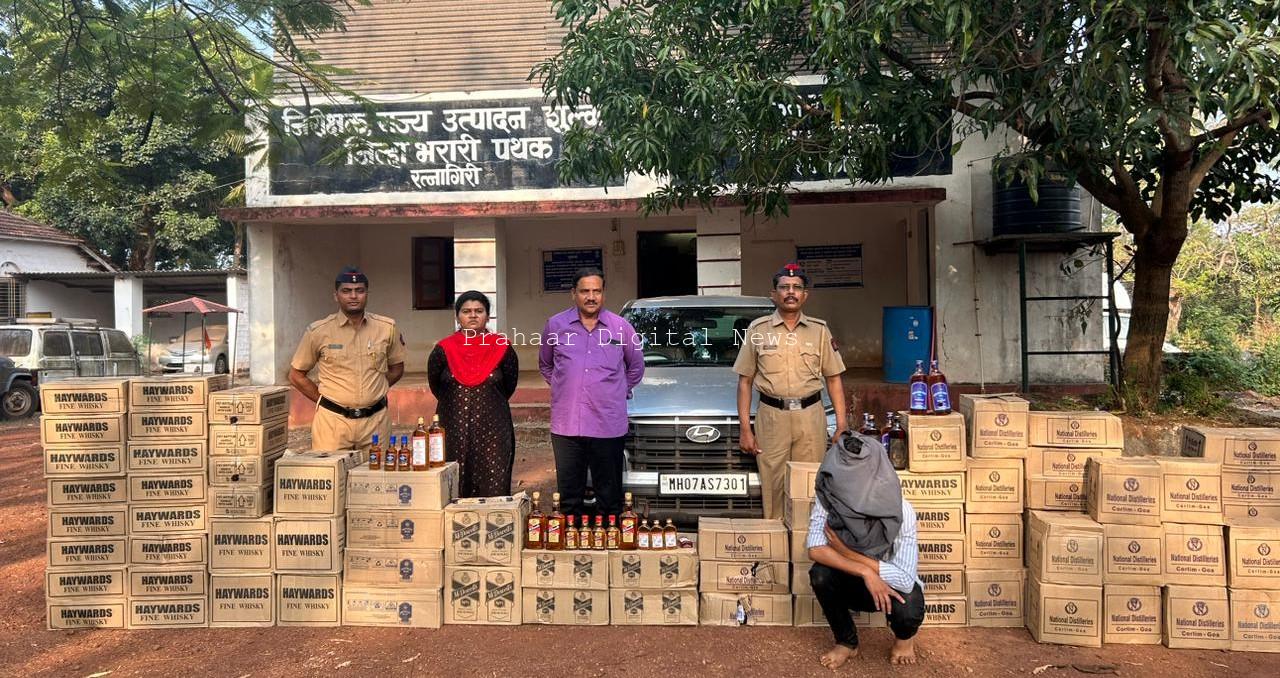 गोवा-मुंबई राष्ट्रीय महामार्गावरुन गस्त घालत असताना गोवा राज्य बनावट दारुची वाहतूक होणार असलेची बातमी खबऱ्याकडून राज्य उत्पादन शुल्क विभागाच्या भरारी पथकाला मिळाली होती. या बातमीप्रमाणे सदर पथकाने संगमेश्वर एस.टी. स्टँड समोरील गोवा-मुंबई राष्ट्रीय महामार्गावर थांबून वाहनांची तपासणी करण्यास सुरुवात केली होती. पहाटे 4.00 वा. चे सुमारास गोव्याच्या दिशेकडून येणाऱ्या राखाडी रंगाच्या चारचाकी मोटार कारला थांबविण्याचा इशारा केला असता पथकाला चुकवून सदर वाहनाचा चालक न थांबता भरधाव वेगाने रिव्हर्स गिअर टाकून तेथून वाहनासह पळ काढण्यास सुरुवात केली. भरारी पथकाला या वाहनाचा संशय आला असताना भरारी पथकाच्या शासकीय वाहनाने अडवून रोखून ठेवून जागीच पकडले. संशयित वाहनातील वाहनचालक याने आपल्या ताब्यातील हयुंडाई कंपनीची क्रेटा या वाहनातून पळ काढत असताना त्यांचा पाठलाग करुन संशयित आरोपी इसमांना पकडण्यात आले. सदर वाहनचालकाच्या ताब्यातील वाहन क्रमांक एम.एच.07 ए.एस 7301 यामध्ये गोवा बनावटी विदेशी मद्याचे विविध ब्रॅण्डचे एकूण 4,65,120/- किंमतीचे 81 बॉक्स मिळून आले. वाहनासहीत एकूण 16,65,120/- किंमतीचा मुद्देमाल जप्त करण्यात आला. सदर गुन्ह्यातील संशयित आरोपी इसम ओंकार इंद्रजीत सावंत व सहआरोपी वैभव मनोज कांबळी याचे विरुध्द महाराष्ट्र दारुबंदी अधिनियम 1949 मधील तरतूदीनुसार गुन्हा दाखल करण्यात आला आहे.
