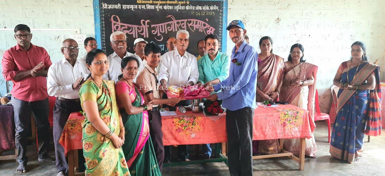 अंगभूत कलेला वाव मिळावा म्हणून संस्था यापुढेही प्रोत्साहन देत राहील. देवांग मेस्त्री याने राज्यस्तरावर यश मिळवत शाळेचे, गावाचे नाव उज्वल केले आहे. शाळा शैक्षणिक तसेच कला, क्रीडा क्षेत्रात सुद्धा पुढे जात आहे ही बाब कौतुकास्पद आहे. यावेळी कला स्पर्धा, विज्ञान प्रदर्शन, प्रज्ञा शोध परीक्षा, क्रीडा स्पर्धेतील गुणवंत विद्यार्थ्यांचा सत्कार करण्यात आला.