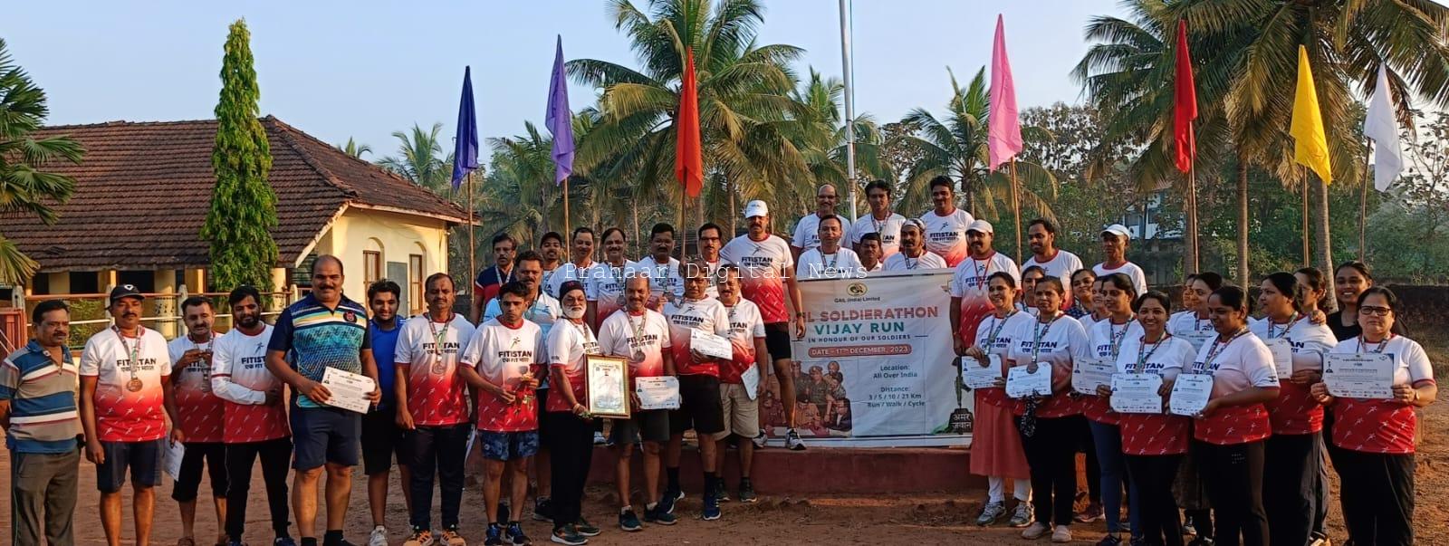 वेंगुर्ले l प्रतिनिधी : सोल्जरॅथॉन मॅरेथॉन स्पर्धा भारतीय सैन्य दलाचा विजय दिन साजरा करण्याच्या निमित्ताने भारतभर गेल इंडिया प्रा. ली. आणी फीटिस्तान तर्फे साजरी करण्यात आली. यामध्ये वेंगुर्ला येथे एकूण ५० जणांनी सहभाग घेतला आणि शहीद झालेल्या सैनिकांना आणि जखमी झालेल्या जवानांच्या कुटुंबीयांना सॅल्यूट करण्यात आला.