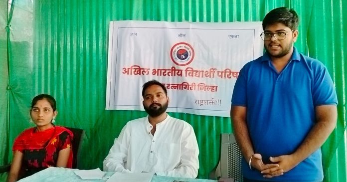 रत्नागिरी : अखिल भारतीय विद्यार्थी परिषदेचे कोंकण प्रदेश सहमंत्री राहुल राजोरीआ यांनी रत्नागिरी येथे घेतलेल्या पत्रकार परिषदेत सांगितले की, परिवर्तनाच्या या काळात देशातील विद्यार्थी आपली भूमिका सकारात्मक पद्धतीने पार पाडण्यासाठी सज्ज आहेत, तरुणांच्या नेतृत्वाखाली विद्यार्थी परिषद विकास करेल. देशाच्या सकारात्मक प्रयोगातून. भारताच्या संकल्पावर ते काम करेल जेणेकरून राष्ट्रीय पुनर्रचनेचे स्वप्न पूर्ण होईल आणि तरुण प्रत्येक प्रकारे निरोगी बनू शकतील. विद्यार्थी परिषदेने सध्या देशातील शिक्षण, पर्यावरणासह विविध क्षेत्रात सकारात्मक बदल घडवून आणण्यासाठी देशातील विद्यार्थ्यांच्या सहभागाचे आवाहन केले आहे.