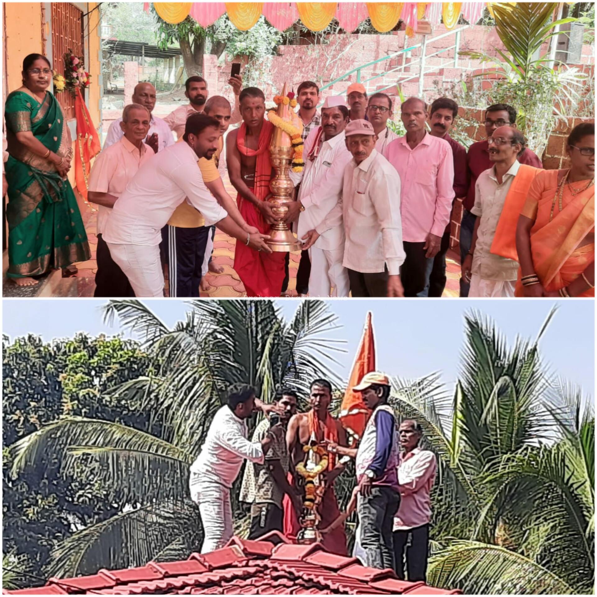 मसुरे | झुंजार पेडणेकर :मालवण तालुक्यातील वायंगणी येथील श्री संत दादा महाराज यांच्या जीर्णोद्धार केलेल्या श्री दत्त मंदिराचा धार्मिक विधी, होमहवन, कलशारोहण सोहळा मसुरे गावचे सुपुत्र उधोजक डॉ दीपक परब यांच्या प्रमुख उपस्थितीत मोठ्या उत्साहात झाले. कार्यक्रम प्रसंगी “दिगंबरा दिगंबरा श्रीपाद वल्लभ दिगंबरा” चा जयघोष चालू असल्याने वातावरण भक्तिमय बनले होते. रविवारी उद्योजक डॉ. दिपक परब यांच्या हस्ते कलश पूजन तर कलशारोहण श्री. रामदास प्रभू यांच्या हस्ते झाले. रविवारी सकाळी ८ वाजता श्री दत्त आणि श्री संत दादा महाराज समाधीची नित्यपूजन, होमहवन, धार्मिक विधी व कलश पूजन, दुपारी श्री दत्त मंदिर कलशारोहण, महाप्रसाद, श्री संत दादा महाराज दिनदर्शिका प्रकाशन, श्री. सिताराम करमरकर यांच्या हस्ते श्री संत दादा महाराज यांच्या जीवन चरित्रावर आधारीत भक्ती लिलामृत भाग १,२,३ कादंबरी कल्याण कटोरा व आरती संग्रह या पुस्तकांचे मोफत वाटप, श्री. मनिष राऊळगावकर यांचा सत्कार सोहळा, रात्री भजन स्पर्धा झाली.