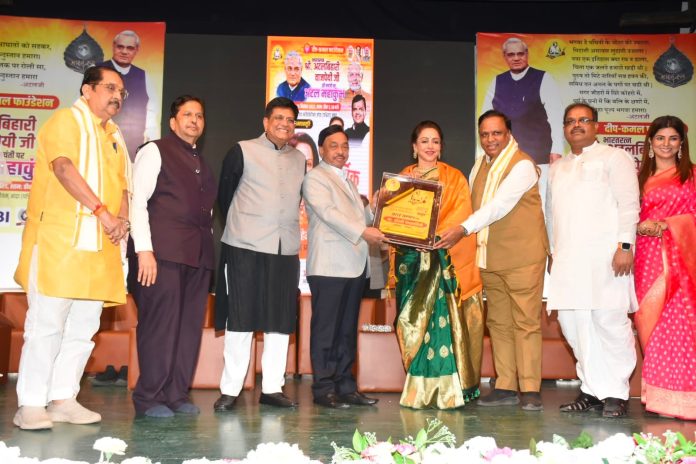 साथ ही कार्यक्रम में इस वर्ष का अटल सम्मान, मथुरा सांसद श्रीमती हेमा मालिनी जी को प्रदान किया।