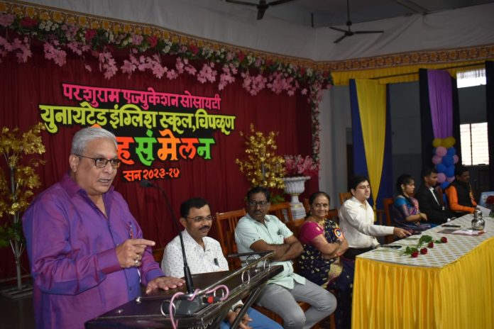 दिनांक २९ डिसेंबर २०२३ रोजी परशुराम एज्युकेशन सोसायटी चिपळूण संचालित युनायटेड इंग्लिश स्कूल चिपळूण शाळेचे वार्षिक स्नेहसंमेलनाचे उद्धाटन सकाळी ८:०० वाजता प्रमुख पाहुण्याच्या हस्ते अतिशय दिमाखदार सोहळ्याने संपन्न झाले. या कार्यक्रमासाठी शाळेचे माजी विद्यार्थी(१९८० एस.एस.सी ) श्री.राजाभाऊ शेंबेकर आणि डॉ.श्री.अमेय बेडेकर ( एस.एस.सी २००३ बॅच) हे प्रमुख पाहुणे म्हणून उपस्थित होते. शाळेच्या झांज पथकाकडून वाजत – गाजत पाहुण्यांचे स्वागत करण्यात आले.प्रमुख मान्यवर यांनी श्री देव परशुराम यांचे पूजन केले.सभागृहात प्रमुख पाहुणे यांच्या हस्ते दीपप्रज्वलन करून कार्यक्रमाची सुरुवात करण्यात आली.त्यावेळी गुरुकुल विभागाच्या विद्यार्थ्यांनी स्वागतगीत, ईशस्तवन गायले.डॉ.अमेय बेडेकर यांनी श्रीफळ वाढवून यावर्षीच्या स्नेहसंमेलनाचे अधिकृत उद्घाटन केले.