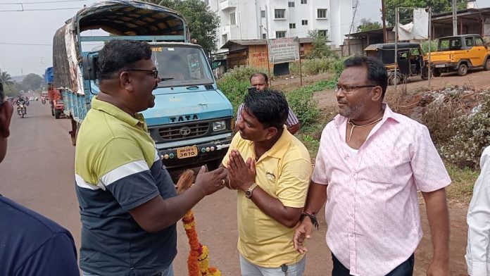 बुधवारी आंदोलनाच्या पहिल्या दिवशी संघटनेच्या कार्यकर्त्यांनी खेड भरणे मार्गावर एकत्र येवून प्रवास करणाऱ्या वाहन चालकांना या काळ्या कायद्याची माहिती दिली. तसेच यावेळी त्यांनी चालकांचा हार आणि श्रीफळ देवून सत्कार करत त्यांना आंदोलनाचे महत्व पटवून दिले.