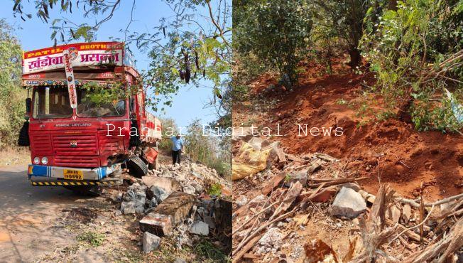 दरम्यान, रातोरात संबंधितांनी जेसीबीच्या सहाय्याने ट्रक सरळ करून त्यामधील गौण खनिज अन्य वाहनातून नेल्याचे सांगण्यात येत असून, हे गौण खनिज दुर्गमानवाड- तळगाव परिसरातील अवैधरित्या उत्खनन केलेले बॉक्साईट असल्याचा ग्रामस्थांचा आरोप आहे.