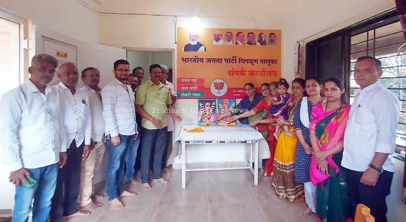 त्याप्रसंगी तालुकाध्यक्ष वसंत ताम्हणकर, शहराध्यक्ष श्रीराम शिंदे, जिल्हा उपाध्यक्ष रामदास राणे, चिपळूण संगमेश्वर विधानसभा विस्तारक प्रसन्ना जाधव, जिल्हा चिटणीस विनोद भोबस्कर, सचिन शिंदे, महिला मोर्चा शहर अध्यक्ष शीतल रानडे, सरचिटणीस निनाद आवटे, विनायक वरवडेकर, सोनू धुमक, ओबीसी मोर्चा शहर अध्यक्ष प्रणय वाडकर, अनुसूचित जाती मोर्चा शहर अध्यक्ष अमित चिपळूणकर, शहर उपाध्यक्ष महेश कांबळी, अमित ओतारी, रोहित हटकर, ऋतुज डाकवे, अश्विनी वरवडेकर, सारीका भावे, स्वाती पटवर्धन, विमल लढ्ढा, प्रणाली सावर्डेकर, श्रृती आवटे, अस्मिता भाटवडेकर आदी पदाधिकारी, कार्यकर्ते उपस्थित होते.