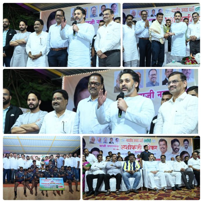 रत्नागिरी : भाजपाचे रत्नागिरी विधानसभा क्षेत्रप्रमुख बाळ माने, भाजप प्रदेश कार्यकारिणी सदस्य अशोक मयेकर यांच्या वाढदिवसानिमित्त विठ्ठल- रखुमाई मित्रमंडळ व कबड्डी असोसिएशन, भाजपा आयोजित जिल्हास्तरीय कबड्डी स्पर्धेचे विजेतेपद गजानन संघर्ष, दापोलीच्या संघाने पटकावले. उपविजेतेपद दसपटी, चिपळूण संघाला मिळाले. माजी खासदार निलेश राणे यांच्या हस्ते बक्षीस वितरण करण्यात आले.