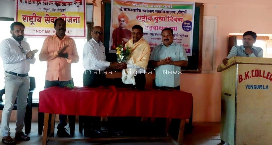 वेंगुर्ले l प्रतिनिधी : भारतीय जनता पार्टी वेंगुर्ले यांच्या वतीने राष्ट्रीय युवा दिवसाचे औचित्य साधून वेंगुर्ले बॅ.खर्डेकर महाविद्यालयात नुकतेच उद्बोधन वर्गाचे आयोजन करण्यात आले होते.