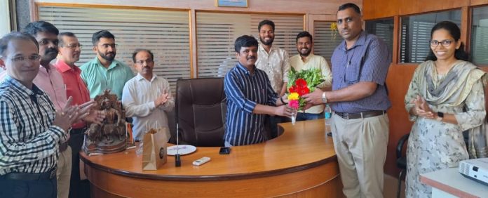 मालवण | प्रतिनिधी : कोकण कृषी विद्यापीठ रोहा संशोधक डॉ. जितेंद्र कदम यांनी मालवण नगरपरिषद कार्यालयास गुरुवारी सदिच्छा भेट दिली. यावेळी मुख्याधिकारी संतोष जिरगे यांनी त्यांचे स्वागत करुन मालवण नगरपरिषदेच्या वतीने सन्मान केला.