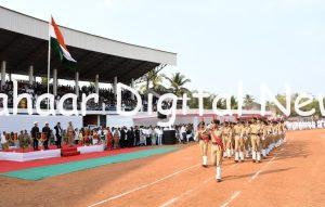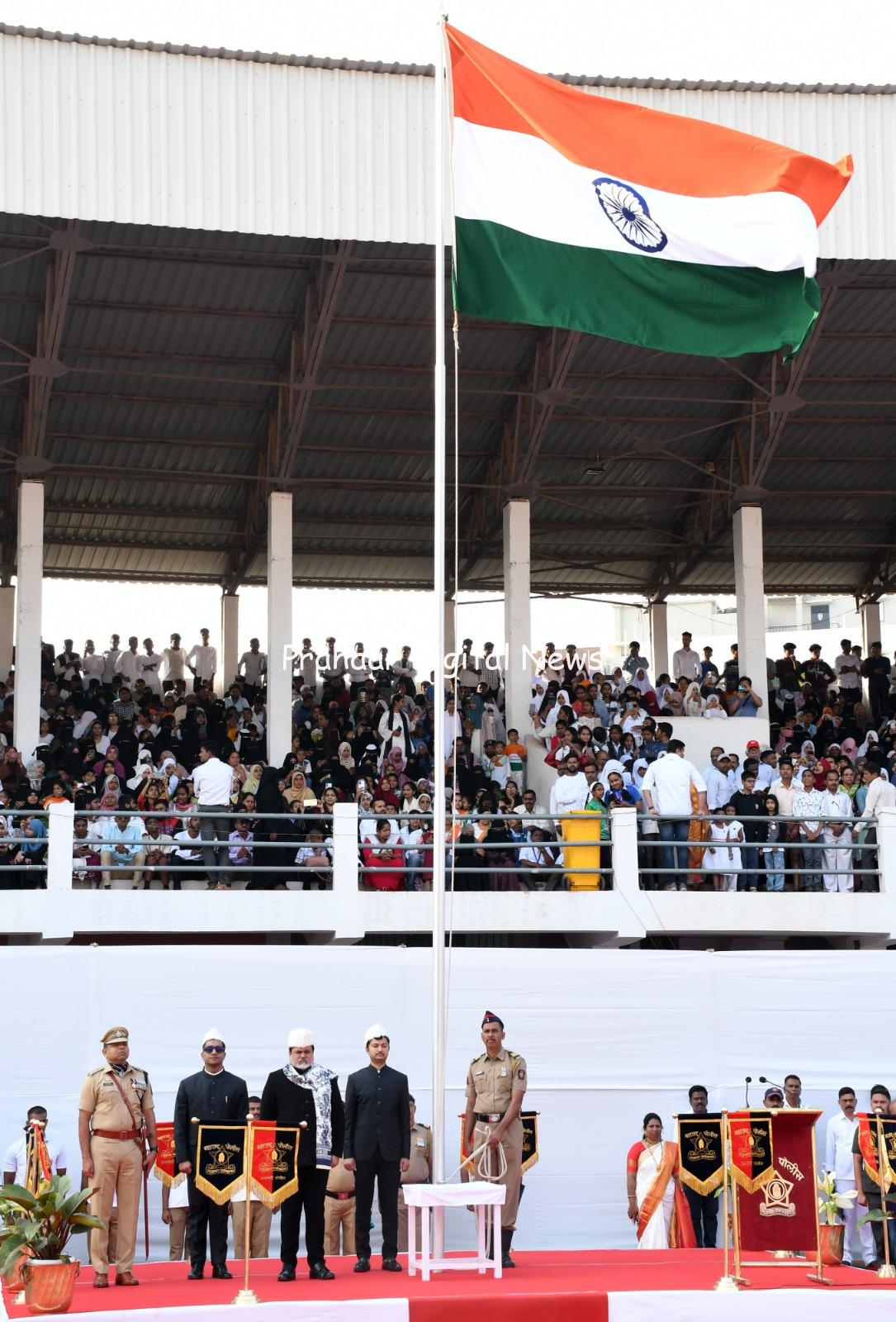 येथील छत्रपती शिवाजी महाराज स्टेडीयम येथे भारतीय प्रजासत्ताक दिनानिमित्त पालकमंत्री उदय सामंत यांच्या हस्ते ध्वजारोहण करण्यात आले. यावेळी जिल्हाधिकारी एम देवेंदर सिंह, पोलीस अधीक्षक धनंजय कुलकर्णी, मुख्य कार्यकारी कीर्ती किरण पुजार, अपर जिल्हाधिकारी शंकर बर्गे, अतिरिक्त मुख्य कार्यकारी अधिकारी परिक्षीत यादव, अपर पोलीस अधीक्षक जयश्री गायकवाड, निवासी उपजिल्हाधिकारी चंद्रकांत सूर्यवंशी, कोकण विभागीय माहिती उपसंचालक डाॕ गणेश मुळे, जिल्हा नियोजन अधिकारी सत्यविनायक मुळे आदी उपस्थित होते.