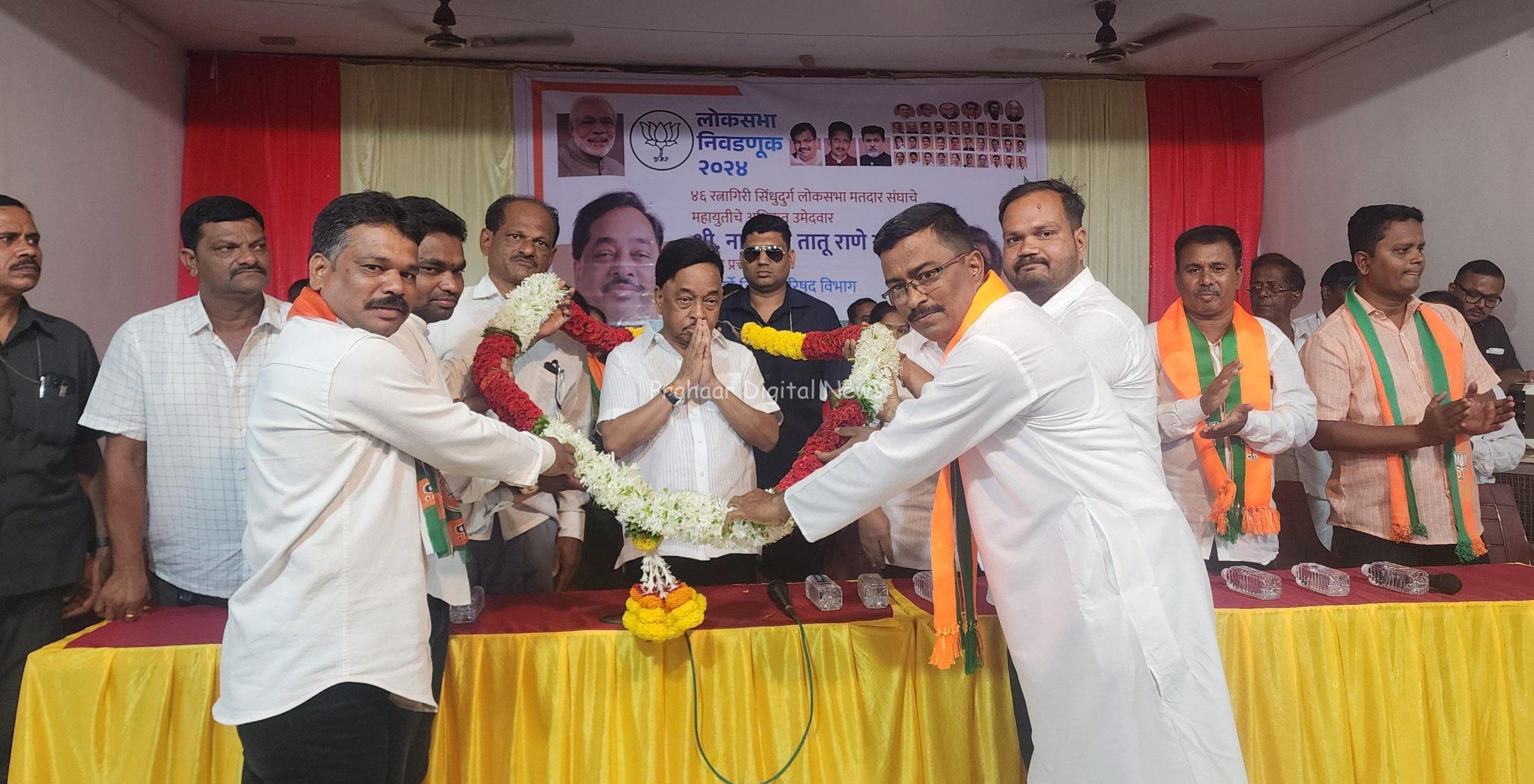 सी वर्ल्ड ला विनायक राऊत ने विरोध केला. विजयदुर्ग ला 4 हजार कोटींचे आधुनिक बंदर होत असताना त्यालाही राऊत ने विरोध केला. मायनिंग मध्ये जाऊन राऊत चा मुलगा हफ्ते घेतो. 3 लाख कोटी गुंतवणूक असलेला ग्रीन रिफायनरी प्रकल्प सुद्धा नको म्हणत राऊत ने विरोध केला. जैतापूर चा औष्णिक ऊर्जा प्रकल्प होऊ नये म्हणून उद्धव ठाकरे ने काही उद्योजकांकडून कोट्यवधी रुपये घेत विरोध केला. कोकणात राऊत ने एकही प्रकल्प आणला नाही. भाजपा संविधान बदल करणार असा खोटा प्रचार केला जातोय. काँग्रेस राजवटीत 80 वेळा राज्य घटनेत बदल केला
