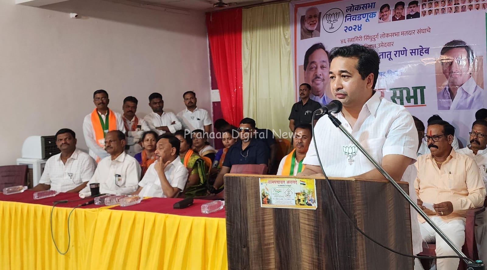विकासनिधी देताना आम्ही कमी पडत नाही मग मते मागतानाही हक्काने मागणार. विकासनिधी देताना मी भाजपला झालेल्या मतदानाच्या आकडेवारीनुसार ए बी सी कॅटेगरी ठरवणार. त्यानुसार विकासनिधी देणार. त्यामुळे सरपंचांनी आता ठरवावे की आपणास किती विकासनिधी हवा आहे. नांदगाव ग्रा पं निवडणूक वेळीही माझ्यावर टीका झाली. पण 11 पैकी 10 सदस्य आणि सरपंच सुद्धा भाजपाचा जनतेने निवडून दिला. नांदगाव हायवे प्रश्न, स्थानिक जनतेला रात्री अपरात्री अडचण आली तर कोण सोबत उभं राहतो हे जनतेला माहिती आहे. नितेश राणेंच्या नावाने मागील 10 वर्षांत आपण विकासाचा ट्रेलर पाहिला. जेव्हा राणेसाहेब खासदार बनतील तेव्हा सगळे प्रश्न चुटकीसरशी संपतील. केवळ खासदार नाही तर पंतप्रधान मोदींच्या मंत्रिमंडळातील कॅबिनेट मंत्री नारायण राणे साहेब असणार आहेत. विरोधकांनी कितीही टीका केली तरी जनता आणि राणे यांच्यात दरी पडणार नाही.
