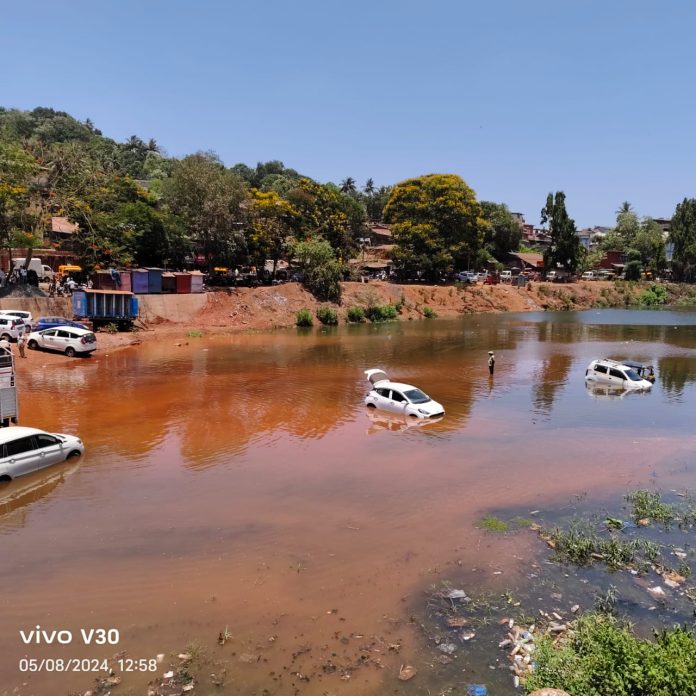 राजापूर (वार्ताहर): बुधवारी दुपारी अचानक शहरातील जवाहर चौक ( दादर ) येथील खर्ली नदीपात्रात भरतीचे पाणी शिरल्याने या ठिकाणी पार्क करुन ठेवण्यात आलेली वाहने या भरतीच्या पाण्यावर तरंगु लागली. काही स्थानिक नागरिकानी ही वाहने बाहेर काढण्याचा प्रयत्न केला.