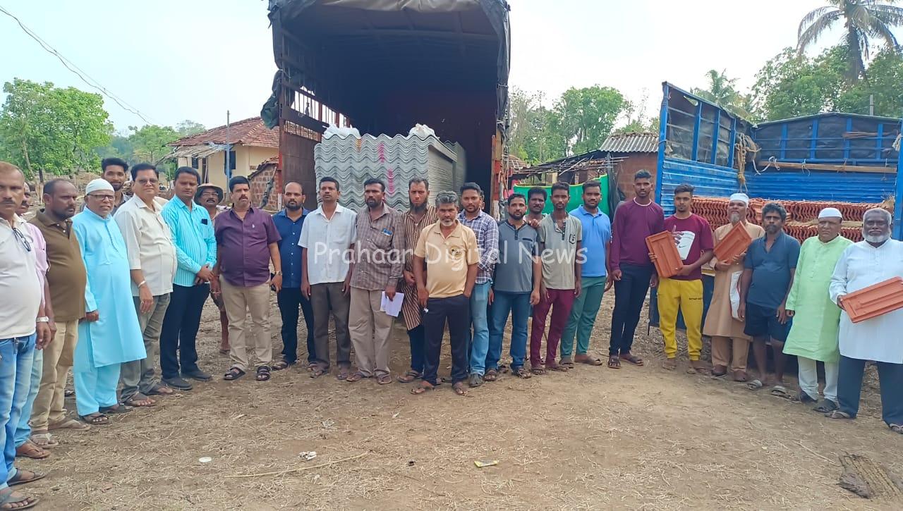 नुकसान ग्रस्त कुटुंबांना सिमेंट पत्रे आणि छताची कौले केली घरपोच