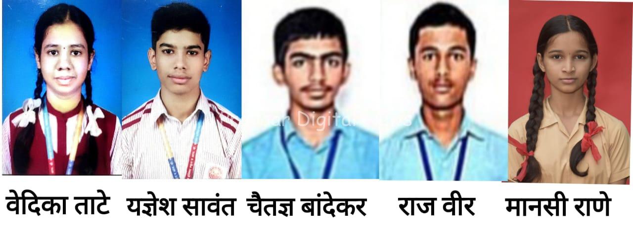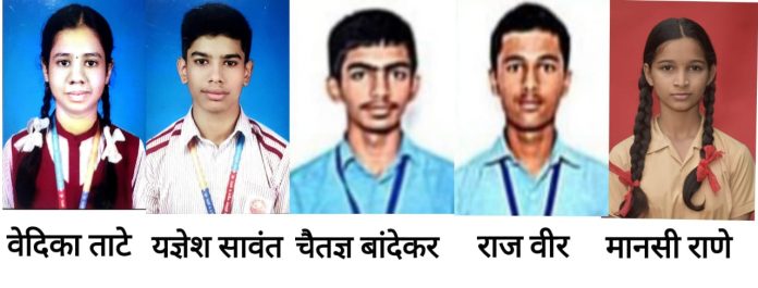 तर बांदा खेमराजचे चैतन्य बांदेकर व राज वीर ९७.६० टक्के गुणांसह तृतीय
