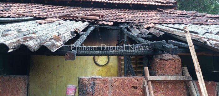 सुनीता कांबळे यांच्यासह त्यांच्या कुटुंबातील पाच माणसे राहतात. बुधवारी रात्री जेऊन झाल्यावर सगळे झोपले होते. दरम्यान मध्यरात्री २ वाजण्याच्या सुमारास शॉटसर्किटमुळे अचानक आग लागली. गाड झोपेत असलेल्या कांबळे कुटुंबियांना बाजूला असलेल्या शेळ्याच्या गोठ्यातून मोठ मोठयाने शेळयांच्या ओरडण्याचा आवाजाने जाग आली. जागे झाल्यानंतर घराला आग लागल्याचे दिसले. त्यांनी आरडाओरड केल्यामुळे वाडीतील ग्रामस्थांनी धाव घेत, घरातील माणसांना तसेच गोठ्यातील शेळ्यांना बाहेर काढत आग विजवण्याचा प्रयत्न केला. शर्थीच्या प्रयत्नाने ग्रामस्थांनी घरातला लागलेली आग विजवली. त्यामुळे पुढचा अनर्थ टाळला आहे. याबाबत तलाठी शिंदे यांना माहिती देण्यात आली. त्यांनी घटनास्थळी जाऊन पंचनामा केला आहे.