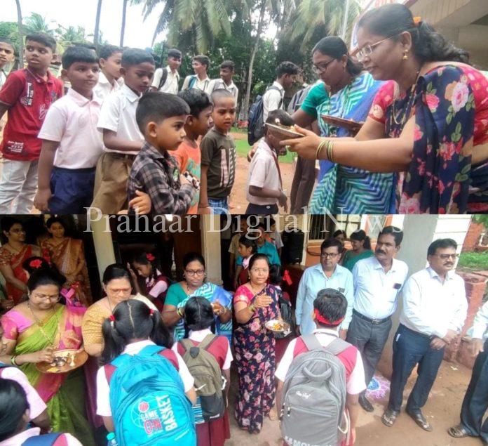 शनिवार असल्याने सकाळीच लवकर उठून नवीन ड्रेस परिधान करून भंडारी हायस्कुल आणि ज्युनिअर कॉलेज आणि प्राथमिक शाळेच्या मुला मुलींनी शाळेच्या प्रांगणात प्रवेश करताच त्यांचे मंजुळ स्वरातील सनई वादनाच्या साथीत प्रवेश घेणाऱ्या चिमुरड्यांवर उपस्थित शिक्षक वर्गाने फुलांची उधळण केलीच शिवाय पंचारतीने ओवाळीत औक्षण करीत एका हातात गुलाबपुष्प तर दुसऱ्या हातात लाडू देत विद्यार्थ्यांना सुयश चिंतले.