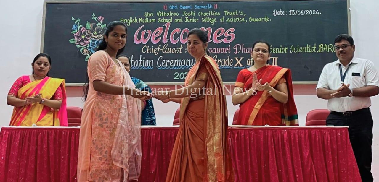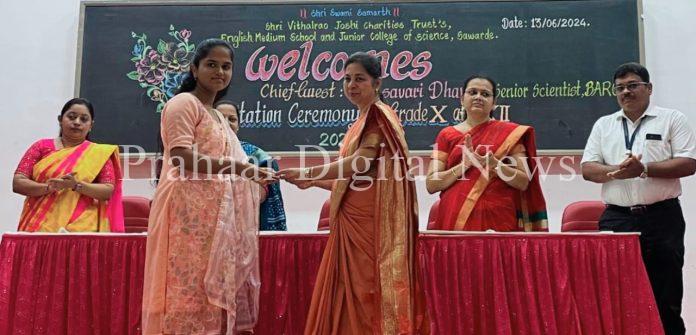 चिपळूण (प्रतिनिधी), : तालुक्यातील श्री विठ्ठलराव जोशी चॅरिटीज ट्रस्ट संचलित इंग्लिश मीडियम स्कूल आणि जूनियर कॉलेज ऑफ सायन्स, सावर्डे या शाळेने सीबीएसई बोर्डाच्या इ. दहावी व बारावी च्या शालांत परीक्षेत उज्वल यशाची परंपरा कायम राखली आहे. संस्थेच्या वतीने विद्यार्थी गुणगौरव समारंभ आयोजित करून घवघवीत यश संपादन केलेल्या गुणवंत विद्यार्थ्यांना व त्यांना मार्गदर्शन करणाऱ्या शिक्षकांना रोख पारितोषिके देऊन सन्मानित करण्यात आले. विद्यार्थ्यांच्या कौतुक सोहळ्याला भाभा अनुसंशोधन केंद्र, मुंबई येथे वरिष्ठ शास्त्रज्ञ म्हणून कार्यरत असलेल्या डॉ. आसावरी ढवळे प्रमुख पाहुण्या लाभल्या.