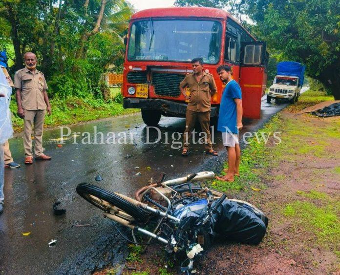 दुचाकी व एसटी बस यांच्यात हडी येथे अपघात