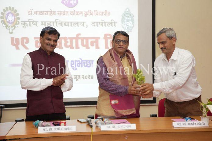 दापोली | प्रतिनिधी: कृषि महाविद्यालय, दापोलीच्या स्थापनेला 59 वर्षे पूर्ण झाली. त्यानिमित्ताने महाविद्यालयाच्या परिषद दालनामध्ये 59 व्या वर्धापन दिन सोहळ्याचे आयोजन करण्यात आले होते.