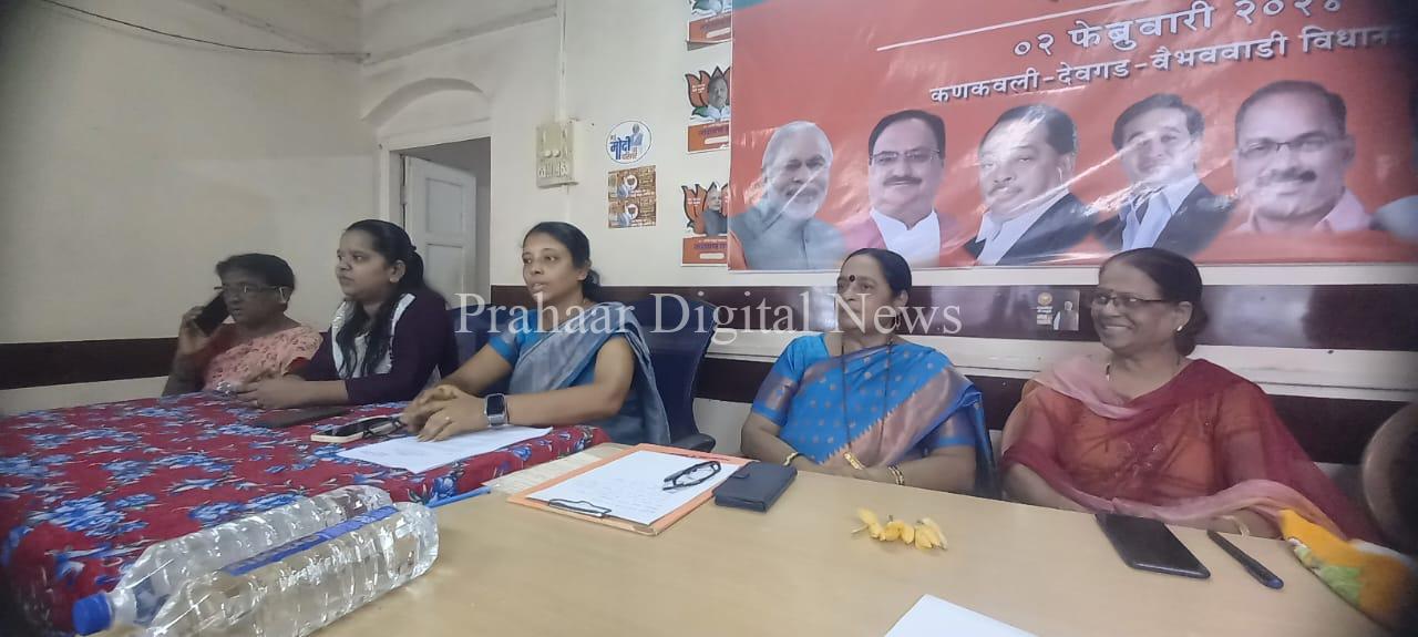 वैभववाडी भाजपा कार्यालय येथे पत्रकार परिषद पार पडली. यावेळी वैभववाडी नगराध्यक्षा नेहा माईणकर, माजी सभापती स्नेहलता चोरगे, महिला पदाधिकारी सीमा नानिवडेकर, नगरसेविका संगीता चव्हाण, सुंदरा निकम, यामिनी वळवी व महिला उपस्थित होत्या.