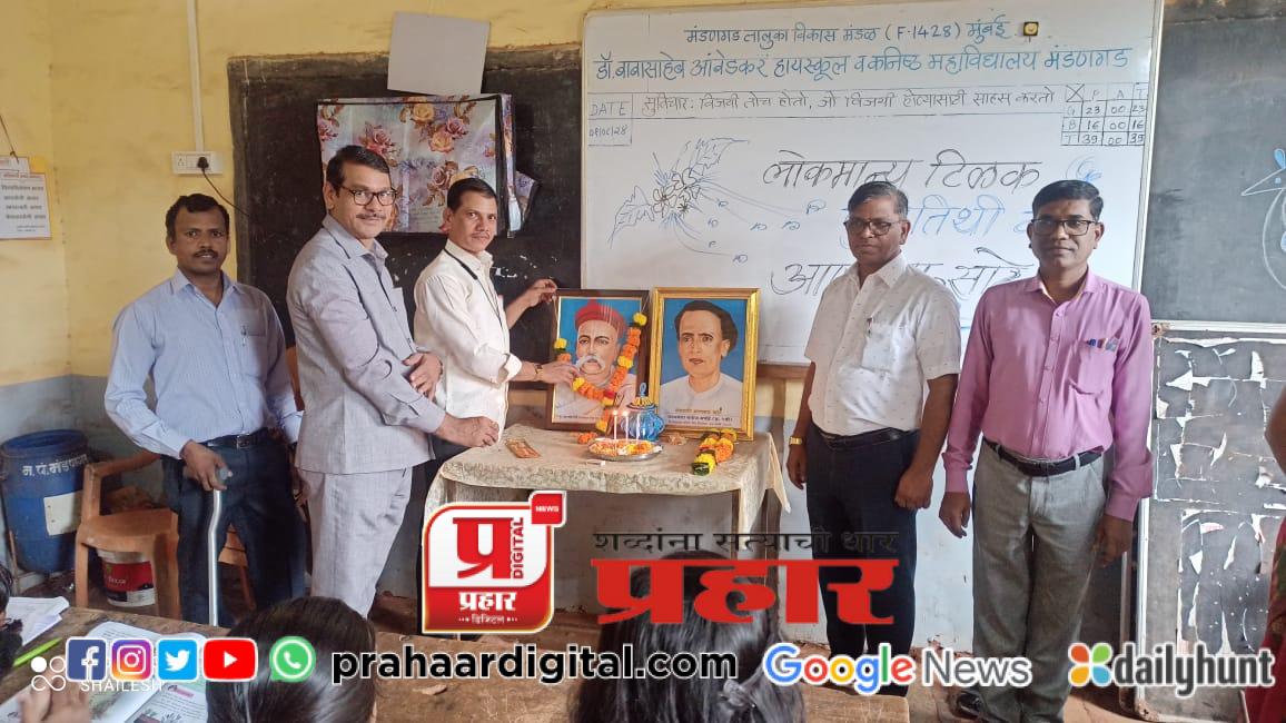 मंडणगड | प्रतिनिधी : डॉ.बाबासाहेब आंबेडकर हायस्कूल व कनिष्ठ महाविद्यालय मंडणगड मध्ये ,आज लोकमान्य बाळ गंगाधर टिळक यांची पुण्यतिथी व लोकशाहीर आण्णाभाऊ साठे यांची जयंती साजरी करण्यात आली .