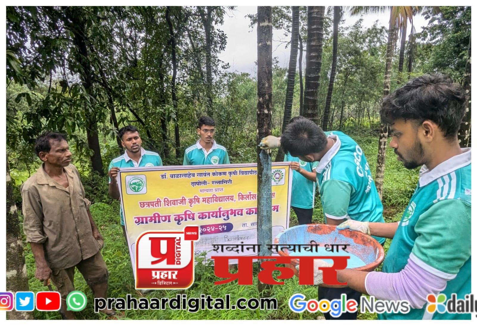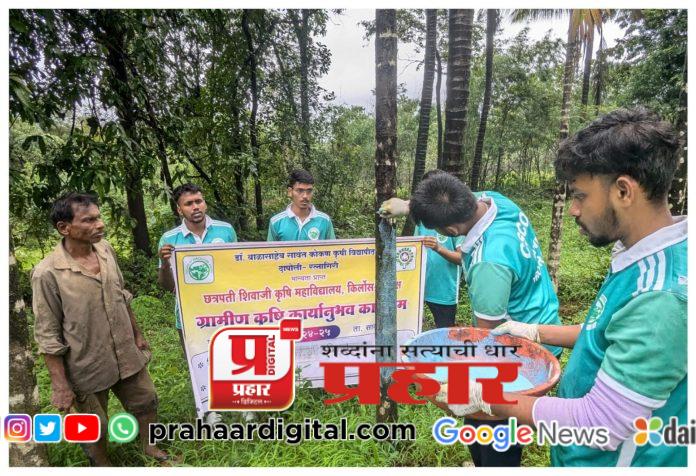 सांगेली । प्रतिनिधी : फळझाडांना रोगामुळे होणाऱ्या जखमांना लावण्यासाठी बोर्डोपेस्ट चा उपयोग होतो. झाडाच्या बुंध्याला बोर्डो पेस्ट लावल्यामुळे बुरशीचा वनस्पतीच्या जखमांवर हल्ला होत नाही. शेतकऱ्यांना बोर्डो पेस्ट कशी तयार करायची, तसेच त्याचा वापर कसा व किती प्रमाणात करायची याची संपूर्ण माहिती सावरवाडी येथील कृषी दुकाने शेतकऱ्यांना दिले. त्याचबरोबर कृषी दुतानी बोर्डोपेस्ट कसे लावावे याचे प्रात्यक्षिक दाखवले.