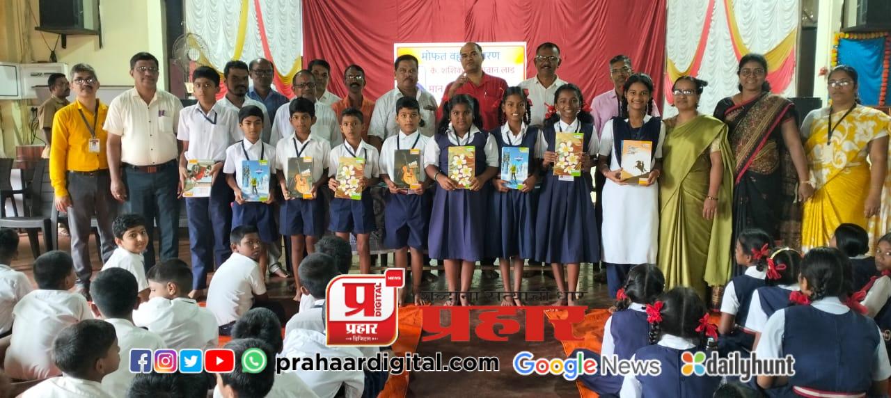 संजय पाटील, अर्जुन बापर्डेकर, मुख्याध्यापक गोपाळ परब,उप मुख्याध्यापक अंकुश घुटूकडे,प्रकाश महाभोज, मधुरा माणगांवकर,उज्वला कदम,शेलार,सद्गुरु साटविलकर ,सौ फर्नांडिस यांसह अन्य शिक्षक आदी मान्यवर उपस्थित होते.यावेळी मान्यवरांच्या हस्ते पाचवी ते दहावी च्या विद्यार्थ्यांना शैक्षणिक साहित्याचे वाटप करण्यात आले.