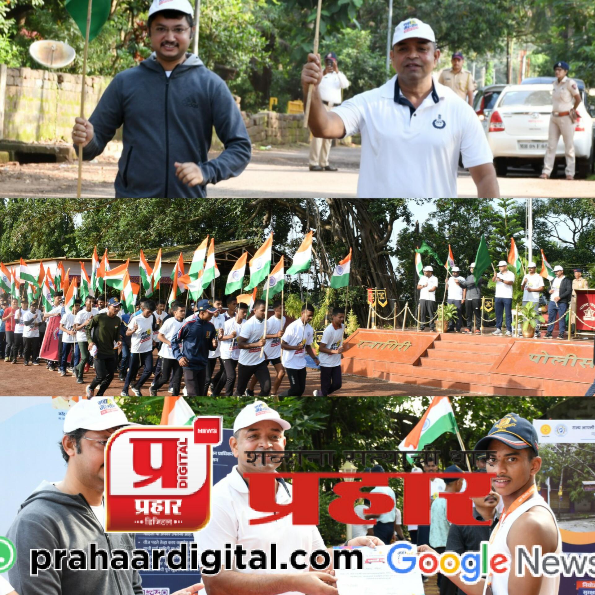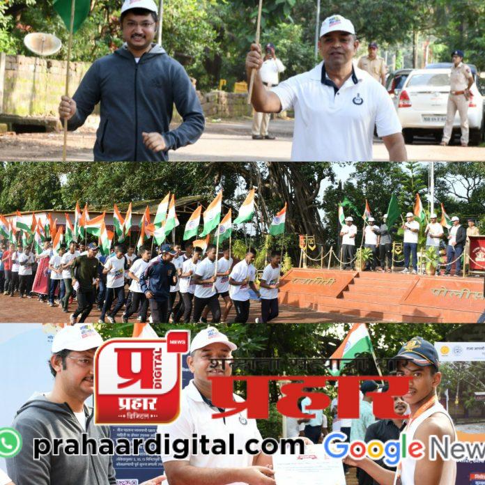 येथील पोलीस मैदानावरुन सुरुवात झालेल्या मिनी मॅरेथॉनला पोलीस अधीक्षक श्री. कुलकर्णी, मुख्य कार्यकारी
